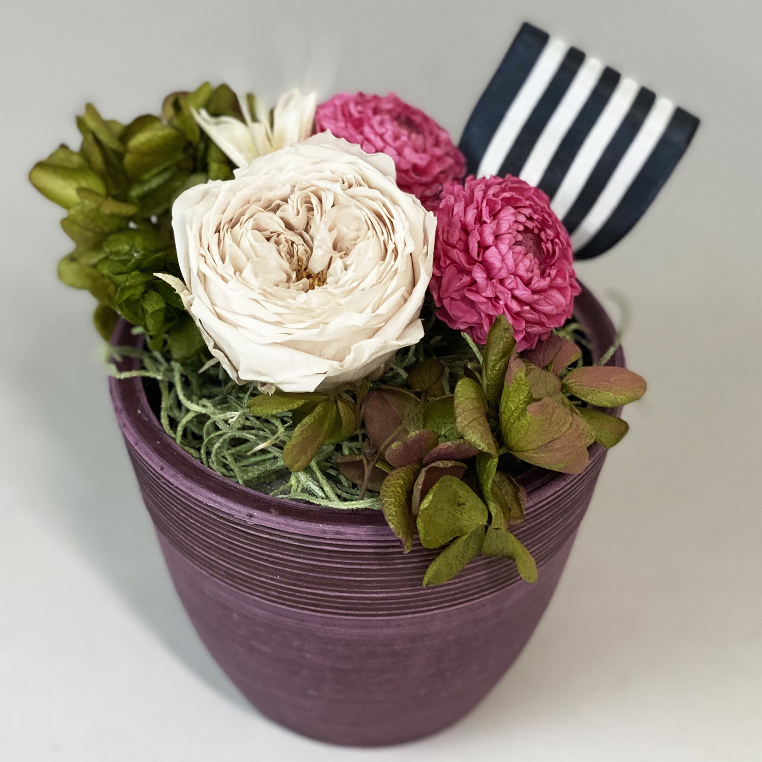 ※こちらは、アーティフィシャルフラワーになりますので、湿度や日当たりを気にせず飾ることができます。